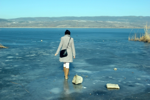 Mesire alanlarıyla çevrili Yeniçağa Gölü'nün buz tutmasının ardından ortaya eşsiz bir manzara çıktı. Bazı kişiler de gölün üzerine çıkarak fotoğraf çektirdi.