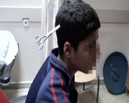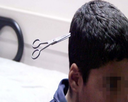 Olay, Güzelyurt Mahallesi 30 Sokak 31 numaralı evde önceki gün meydana geldi. Hasan Y., babasının bıyıklarını kesmek için kullandığı makası alıp, şakalaştığı ağabeyi İbrahim Y.'nin saçını kesmek istediğini söyledi. İki kardeş arasındaki şakalaşma sırasında, Hasan Y.'nin, elindeki makas ağabeyinin başının sağ arka kısmına saplandı. İbrahim Y., ailesi tarafından kafasındaki makasla birlikte çağrılan ambulansa bindirilip, Avukat Cengiz Gökçek Devlet Hastanesi'ne götürüldü. Acil Servis'te doktorların hemen müdahale ettiği İbrahim Y.'nin kafasının röntgen filmi çekildi. Doktorlar, röntgen filmini inceleyip, makasın sivri kısmının kafatasına 1.5 santim saplandığını ancak, beyne zarar vermediğini tespit etti. Doktorlar, lokal anestezi ile İbrahim Y.'nin başına saplanan makası çıkarttı. İbrahim Y., yapılan müdahale ardından yaklaşık 2 saat gözlem altında tutulduktan sonra taburcu edildi.