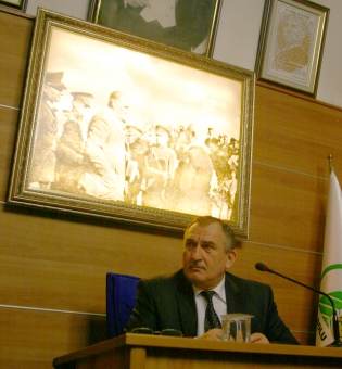 Meclis Salonundaki Atatürk’ün Bolu’ya gelişi hakkında bilgiler veren Başkan Yılmaz, “Benim konuşma yaptığım yerin üzerindeki duvarda bulunan resim Atatürk’ün Bolu’ya gelişinin bir fotoğrafıdır. Bu fotoğraf 1944 yılında çekilmiştir. O dönemin Belediye Başkanı olan mesleği baytarlık olan Reşat Aker ile çekilmiş resmidir. Bu bizim için çok değerli bir fotoğraftır” diye konuştu.