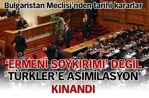Bulgaristan Parlamentosu'nda bugün Türkiye ile ilgili iki önemli konu görüşüldü. İlk olarak Bulgaristan'da ırkçı ve aşırı milliyetçi ATAKA partisine mensup milletvekilleri tarafından hazırlanan ve 1915 olaylarıyla ilgili Ermeni iddialarının Bulgaristan tarafından resmen tanınmasını öngören karar tasarısı ele alındı. Tasarı genel kurulda reddedildi. Karar tasarısı, parlamentonun uzun Noel tatilinin ardından bugün yapılan yeni yılın ilk genel oturumunda ATAKA milletvekillerinin girişimiyle birinci madde olarak gündeme alındı. Tasarı, hararetli geçen görüşmelerin ardından 103 milletvekilinin katıldığı oylamada 14'e karşı 30 oyla reddildi. Oylamada 59 milletvekilinin ise çekimser kalması dikkat çekti. Üyelerinin çoğuluğunu Türklerin Oluşturduğu Hak ve Özgürlükler Hareketi (HÖH-DPS) milletvekili ve genel başkan yardımcısı Lütfi Mestan görüşmeler sırasında yaptığı konuşmada parlamentonun tarihi olaylar ile uğraşmaması gerektiğini blirtrek, "Ayrıca böyle bir karar tasarısı ve bildiri Bulgaristan ile Türkiye arasındaki ilişkileri durup dururken sıkıntıya sokacaktır" dedi.