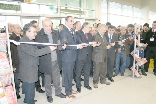 Daha sonra İl Özel İdaresi Meclis Başkanı Mücahit Kutlu, Boluspor Kulübü Başkanı Necip Çarıkçı, Bolu Belediye Başkanı Alaaddin Yılmaz, Bolu İl Emniyet Müdürü Sabri Durmuşlar, Bolu Vali Yardımcısı Ömer Eru ve Kipa Extra Format Bölge Direktörü Murat Etçi açılış kurdelesini birlikte kestiler.