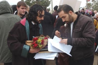 Gruptaki bazı kişiler yanlarında getirdikleri kitap ve çiçekleri Avukat Ali Rıza Yaman'a verdi. Grupla görüşen avukat daha sonra Salih Mirzabeyoğlu'yla görüşmek için cezaevine girdi.