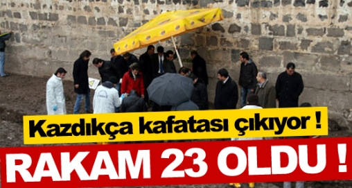 Diyarbakır’ın Sur ilçesindeki tarihi İçkale’de, bir dönem "ceza ve tevkifevi" olarak kullanılan yapının yanındaki çevre düzenleme çalışmaları sırasında, insan kemikleri bulunması üzerine başlatılan soruşturma devam ediyor. Diyarbakır Cumhuriyet Başsavcılığı’ndan aldığı bilgiye göre, valiliğin görevlendirdiği 20 işçiyle sabah yeniden başlatılan kazı çalışmalarında 4 kafatası ile kemik parçaları bulundu. Böylece kazılarda çıkarılan kafatası sayısı 23’e yükseldi. İl Özel İdare Müdürlüğünce görevlendirilen işçilerin, büyük bir kısmının sağlık sorunlarını gerekçe göstermesi üzerine dün kazılara ara verilmiş, bunun üzerine Diyarbakır Cumhuriyet Başsavcılığı, Diyarbakır Valiliğine yazı yazarak, yeni personel görevlendirilmesi talebinde bulunmuştu. Geçen hafta tarihi İçkale bölgesinde kazı çalışmalarında ortaya çıkan kafatası ve kemikler DNA tespiti için İstanbul Adli Tıp Kurumu’na gönderilmişti. Burada yapılacak işlemin ardından, yakınlarının kayıp olduğunu iddia eden vatandaşlardan alınacak kan örnekleriyle, kemiklerden elde edilen DNA’ların karşılaştırılıp, kimlik tespitlerinin buna göre yapılacağı belirtilmişti.