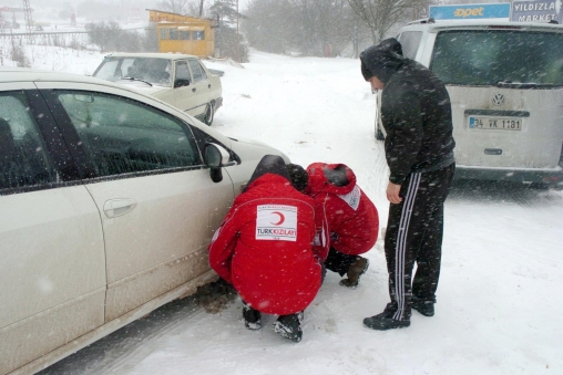 Tatil için yola çıktıklarını söyleyen bir sürücü, "İstanbul'dan çocuğumuz kar görsün diye buraya geldik ancak İstanbul'a da kar gelmiş. Burası daha güzel. Yolda kaldık denmez ama sağolsun arkadaşlar burada bize yardımcı oluyorlar" dedi.