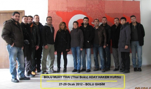 Türkiye Muay Thai Federasyonu 2012 Faaliyet programında yer alan Muaythai Aday Hakem Kursu 27-29 Ocak 2012 tarihinde Bolu Gençlik Hizmetleri ve Spor İl Müdürlüğünü Gençlik Merkezinde Bolu' dan ve Bartın' dan kursiyerlerin katılımıyla yapıldı. Söz konusu kursta, Muaythai merkez hakem kurulu başkanı, başkan yardımcısı ve federasyon genel sekreteri görev aldı. Yılın ilk Muaythai faaliyeti olan hakem kursunun düzenlenmesinin amacı ilimizde yeni faaliyetleri başlayan bu sporun müsabaka faaliyetlerini yürütecek hakemler kazanmaktı.