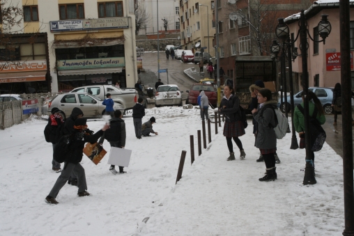 Öğle saatlerinde okullarından çıkan öğrenciler ise birbirleriyle kartopu savaşı yaparak, karın tadını çıkartmaya çalıştılar.