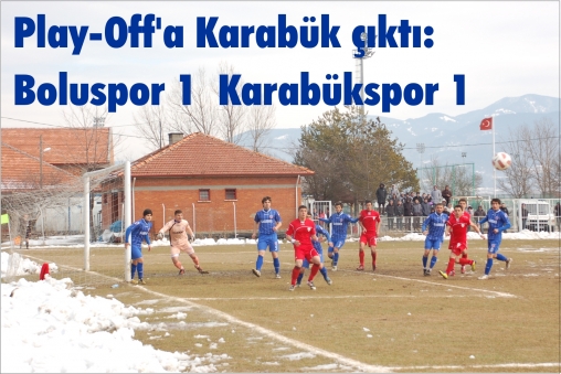 Maçın ilk yarısına Boluspor etkili başladı. 9.dakikada Fatih’in kornerden gelen ortasına arka direkte iyi yükselen Mehmet Can Boluspor’u 1-0 öne geçirdi. 10.dakikada Emin ve 23.dakikada Ceyhun Karabükspor adına net pozisyonları değerlendiremezken, bu pozisyonlarda kaleci Burak başarılıydı. 33.dakikada bu kez Boluspor gole yaklaştı. Cezasahası içinde Harun’un attığı sert Okan’a çarpıp auta gitti ve ilk yarı Boluspor’un 1-0’lık üstünlüğü ile tamamlandı. 2.yarıda mücadele tam bir çamur deryasında oynandı. Ayakta kalmakta zorlanan 2 ekipte son dakikalara kadar pozisyon bulmakta zorlandılar. Maçın 76.dakikasında kazanılan köşe atışından gelen topa kaleci Burak’ın eliyle yaptığı müdahale yetersiz kaldı. Seken topa Ceyhun’un sert vurdu ve 3 kişinin arasından takımının beraberlik golünü atmayı başardı. Bu gol sonrası oyun sertleşirken müsabaka 1-1 tamamlandı. Bu skor Trabzonspor’un Çaykur Rizespor’a, Sivasspor’un da Samsunspor’a yenilmesi sonrası Play-Off’a kalan takım Karabükspor oldu.