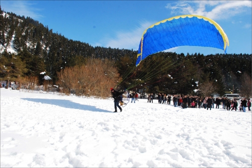 Fethiye'den hafta sonu tatili için Abant Tabiat Parkı'na gelen ve 16 yıldır yamaç paraşütü yapan Halil İbrahim Kılıç, buz tutan Abant Gölünün üzerinde motorlu yamaç paraşütü (paramotor) ile yamaç paraşütü yapmak istedi. Kılıç, göl üzerindeki kar kalınlığının fazla olması nedeniyle havalanamadı.