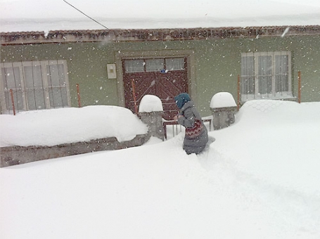 Gerede’nin bazı mahallelerinde evlerin giriş kapıları da kar nedeniyle kapandı. Vatandaşlar evlerine girip çıkarken bir hayli zorlandı.