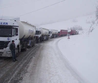Gerede’de iki gündür etkili olan ve akşam saatlerinde şiddetini artıran kar yağışı, Karabük Bartın, Karabük Kastamonu, Karabük Zonguldak ile Karabük Ankara İstanbul yollarında ulaşımı aksattı. Dün trafik ekipleri tarafından zincirsiz araç geçişlerine izin verilmezken, İstanbul'u Karadeniz’e bağlayan Kemikli rampaları 7 saat araç trafiğine kapandı. Yoğun kar yağışı sonrası özellikle yabancı uyruklu TIR ve otobüslerde zincir olmaması nedeniyle araçların yolda kalması sonucu yüzlerce araç mahsur kaldı. Karayolları ekiplerinin geçişine dahi izin vermeyen yollarda kalan TIR'ların imdadına ise köylüler yetişti.