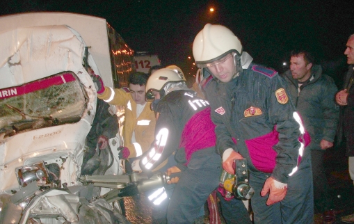 06 BHC 09 plakalı kömür yüklü kamyona arkadan çarpan, 14 EK 759 plakalı araç sürücüsü Mehmet Kılıçarslan kaza sonrasında araç içinde sıkıştı.