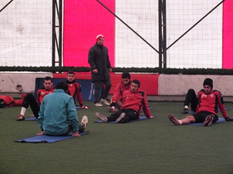 20 kişilik futbolcu grubu ile ilk yapılan ilk çalışmada Teknik Direktör bahri Kaya ve ekibi takıma karın adalesi ve kondisyon hareketlerinden oluşan bir idman uyguladı. Yaklaşık 25 dakika süren idmanda futbolcuların hırslı ve istekli oldukları gözlendi. Halı sahadaki çalışmada sakatlığı tamamen geçen Omar Wade’de yer alırken, Teknik Direktör Kaya bu çalışma ile oyuncularına dayanıklılık ve kuvvet yüklemeye çalıştıklarını söyledi.