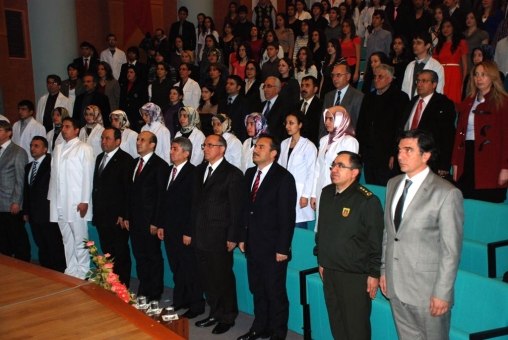 Törende son olarak konuşan Vali İbrahim Özçimen ise doktorların ve Tıp Fakültesi öğrencilerinin 14 Mart Tıp Bayramını kutladı. Doktorluk mesleğinin kutsal bir meslek olduğunun altını çizen Vali Özçimen, “Öncelikle Tıp Fakültesini kazanma aşamasında ailenizin çok ciddi sizlere desteği oluyor. Sonra da bu destek devam ediyor. Doktorların kahramanları hem kendileri hem anne babalarıdır. Onları da gönülden tebrik ediyorum. Gerçekten diğer öğrencilerimiz sınava girene kadar yoruluyorlar, siz aynı şekilde 6 sene daha devam ediyorsunuz. Katlanacak bir şey değil, kolay değil ama milletin gönlünde taht kurmak böyle bir şey işte. Aslında ben insanlığın anlamını da böyle bir şeyde buluyorum. Biliyorsunuz varlıklar var. Varlıkların kıymet dereceleri var. Cansızlar, bitkiler, hayvanlar ve insanlar. Bir üst kuruma geçebilmek için fedakarlık gibi cansızlar, bitkiler ve hayvanlarda olmayan özellikler var. Bu tabiplerde fazlasıyla var. Fazlasıyla da olmalı. Bu şekilde olan doktorlar ve öğrencilerimizi tebrik ediyorum. 14 Mart Tıp Bayramınızı tebrik ediyorum. Hepinize güzel bir gelecek diliyorum. Ailelerinize sabırlar diliyorum” şeklinde konuştu. Konuşmaların ardından İzzet Baysal Tıp Fakültesi 2010-2011 akademik yılında başarılı olan öğrencilere teşekkür belgeleri verildi. İzzet Baysal Tıp Fakültesi’ni kazanarak bu yıl eğitim öğretime başlayan 1’nci sınıf öğrencilerin beyaz önlüklerini giymelerinin ardından yapılan ikramlarla düzenlenen program sona erdi.