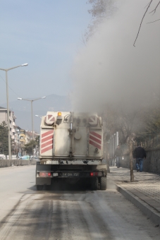 Önceki gün Atatürk Bulvarı üzerinde fırçalı araçla yol kenarında malzemeleri temizlemeye çalışan belediye ekipleri kelimenin tam anlamıyla kaş yapayım derken göz çıkarttılar. Yerdeki malzemeleri süpürüp içine alan araç, tozu da havaya üflemeye başlayınca vatandaşların tepkisiyle karşılaştı. Kaldırımda yürüyen vatandaşlar, kendilerini yola ve karşı kaldırıma atmaya çalışırken, aracın sürücüsüne ve belediye ekiplerine tepki gösterdiler. Tepkilere rağmen bir süre daha yolu temizlemeye çalışan görevli, işi bittikten sonra bulvardan ayrıldı.