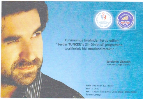 Gençlik ve Spor Bakanlığı ile Kredi Yurtlar Kurumu Genel Müdürlüğü işbirliğiyle düzenlenen şiir dinletisi, Pazar günü Abant İzzet Baysal Üniversitesi Kongre Salonunda saat 14.00’de gerçekleşecek.