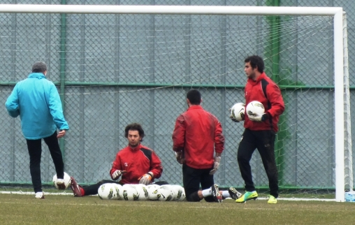 Kaleci Eser’in sakatlanması nedeniyle A2 takımından kadroya dahil edilen Burak Öğür’de dün kalecilerin Batur yönetiminde yaptığı çalışmada yer aldı. Yaklaşık 1 saat süren çalışmada kaleci antrenörü Hikmet Batur tarafında şut bombardımanına tutulan kaleciler çalışma boyunca bir hayli keyifli anlar yaşadılar. Kaleci Eser’in sakatlığı nedeniyle 3.kaleci olarak A2 takımında takıma dahil edilen Yağızcan’da Atacan ve Burak Öğür gibi çalışma boyunca göz doldurdu.