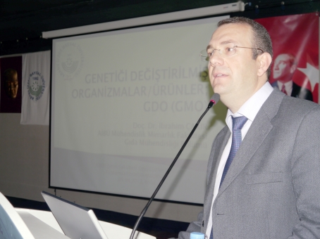 Mühendislik Mimarlık Fakültesi Gıda Mühendisliği Bölümü öğretim Üyesi Doç. Dr. İbrahim Çakır’ın konuşmacı olarak katıldığı konferansa Bolu Gıda, Tarım ve Hayvancılık İl Müdürü Abdulkadir Öztürk, Özel Eğitim Bölümü Başkanı Yrd. Doç. Dr. Ahmet Yıkmış, öğretim üyeleri ve öğrencilerin yanı sıra Bolu İl Çevre ve Orman Müdürlüğü başta olmak üzere özel sektör temsilcileri ve basın mensupları katıldı. Konuşmasına GDO’lu ürünler hakkında bilgi vererek başlayan Doç. Dr. İbrahim Çakır, GDO’lu ürünlerin üretim yöntemleri, dünyada GDO’lu ürünlerin üretim miktarları ve üretimin en yaygın olarak yapıldığı ülkeler, potansiyel etki mekanizmaları, endişeler, gıda dışı kullanım alanları, alerji üzerine etkileri konularında bilgiler verdi. Doç. Dr. Çakır, Biyogüvenlik Kanunu, GDO Yönetmeliği, Ülkemizde GDO analizlerinin yapıldığı laboratuarlar ve Biyogüvenlik Kurulu’nun yapısı ve işleyişinin anlatılmasının ardından konuşmasını tamamladı. Katılımcılardan gelen katkı alınması ve soruların da yanıtlanmasının ardından etkinliği düzenleyen öğrenciler ve Özel Eğitim Bölümü Başkanı tarafından konuşmacıya çiçek takdim edildi.