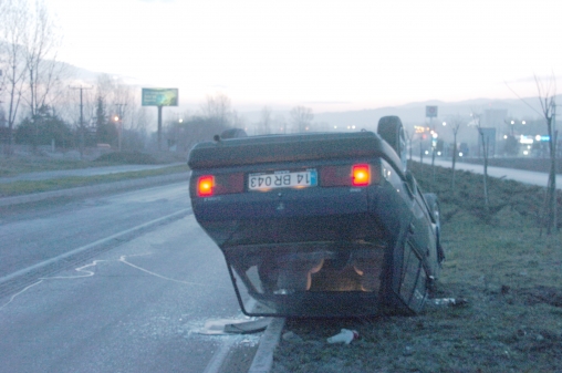 Bolu’da meydana gelen trafik kazasında 2 kişi yaralandı. Alınan bilgiye göre İstanbul’dan Ankara istikametine gitmekte olan ve Esma Özarslan idaresindeki 14 BR 043 plakalı otomobil, Organize Sanayi mevkiinde sürücüsünün direksiyon hakimiyetini kaybetmesi sonucu refüje vurarak takla attı. Meydana gelen kazada araçta bulunan İmran Gülsüm, Tülin Meriç yaralandı.