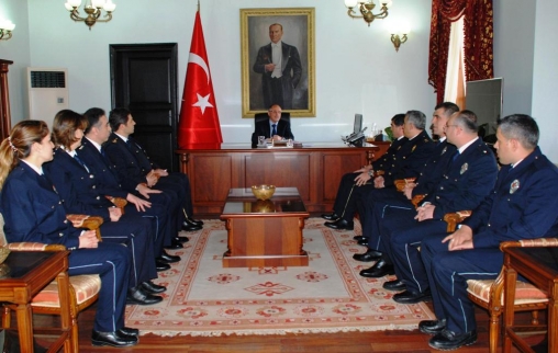 Polis teşkilatının kuruluş yıldönümü etkinlikleri hakkında Vali Özçimen’e bilgiler veren İl Emniyet Müdürü Durmuşlar, “Biz Polis Teşkilatı olarak bundan önce olduğu gibi bundan sonra da sizlerin emrinde çalışmalarımıza devam edeceğiz” dedi. Polis teşkilatının 167. kuruluş yıldönümünü kutlayan Vali Özçimen, Polis Teşkilatının çok büyük ilerlemeler kaydettiğini dile getirdi. Polis Teşkilatının gerek ülkemizde gerekse tüm dünyada saygı uyandıran ve örnek alınan bir teşkilat olduğuna dikkat çeken ve bundan dolayı da mutlu olduğunu sözlerine ekleyen Vali Özçimen, “Emniyet Teşkilatı olarak çok yol kat ettik. Bu gelişim, geçmiş mensuplarınızın ve şimdikilerin fedakarca çalışmaları sayesinde olmuştur. Polislerimiz başarılı oldukça vatandaşlarımızın huzuru ve güveni de artıyor. Son yıllarda özellikle teknolojik gelişmeler sayesinde suçluların tespit edilerek yakalanmaya başlanmasından sonra teşkilat büyük bir sıçrama yaptı. Emniyet Teşkilatının geldiği nokta göğüs kabartan bir nokta. Daha da iyi olmalı” dedi. Yasakların, vatandaşlarımızın canlarını ve yaşamlarını korumak için konulduğunu belirten Vali Özçimen, “Sıfır işkenceye ulaşmak çok iyi. Delilden suça ve suçluya gitmeyi başarıyoruz. Teşkilatınızı tebrik ediyor, teşkilatınızın ve Türkiye’nin daha da yükseğe çıkmasında sizlerin daha iyi şekilde çalışacağınızdan hiç şüphem yok. Polis teşkilatı olarak ebediyete intikal etmiş şehitlerimizi de rahmetle anıyorum. Her zaman üzerimize almış olduğumuz kutsal ve ağır yükün bilincinde olarak görev yapmalıyız. Sizlere ailelerinizle birlikte sağlık ve başarılarınızın devamını diliyorum” ifadelerine yer verdi. Emniyet Teşkilatının fedakârlıklarla, büyük gayretlerle, gece gündüz demeden çalıştığını belirten İl Emniyet Müdürü Durmuşlar, “Emniyet teşkilatımızın bugünlere gelmesinde siz idarecilerimizin ve vatandaşlarımızın da büyük destekleri oldu. Sizin desteklerinizle emniyet ve asayiş olarak daha iyi yere varacağız. Gerek günlük yaşantı olarak, gerek kamu düzeni olarak, gerekse trafik olarak her alanda çalışmalarımızı aralıksız sürdüreceğiz” dedi.