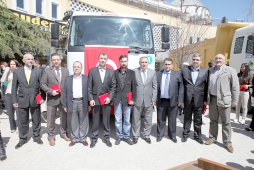 Belediyenin yürüttüğü çalışmalar hakkında katılımcılara bilgiler aktardıktan sonra hibe araç alarak katkıda bulunan kuruluşlara teşekkür ederek konuşmasını sürdüren Başkan Yılmaz, “ Belediye çalışmalarına vatandaşlarımızın yanı sıra ilimizde faaliyetlerini sürdüren önemli firmalarda çok büyük destekler veriyorlar. Bolu’da istihdam sağlayan, şehrimizin önünü açan firmalarımızın aynı zamanda Bolu Belediyesi’ne de çok büyük katkıları olmuştur. Örneğin Arçelik AŞ. Hem Bolu’da çok büyük istihdam sağlıyor, hem de Bolu Belediyesi’ne destek veriyor. Aynı zamanda Arçelik Isıtıcı Cihazlar Ürün Direktörü Adnan Tüfekçi beyefendi de Koç’dan aldığımız bazı araçların uygun fiyatta alınması ile ilgili de çok büyük destekler veriyor. Bu kapsamda iki adet otobüs alındı. İki otobüsü neredeyse bir otobüs fiyatına alınması konusunda bize çok büyük önderlik etmiştir. Kendilerine teşekkür ediyorum. Yine yakın zamanda ilimizde hizmet vermeye başlayan Kipa AŞ’de Bolu Belediyesi’ne iki adet tır verdi. Kendilerinden Allah razı olsun, Bolu’daki kazançlarının bol ve bereketli olmasını niyaz ediyorum. Yine büyük firmalarımızdan biri olan Erpiliç’de Bolu Belediyesi’ni yalnız bırakmayanlardan. Bu sene bir tırda onlar aldılar. Yine Bolu Belediyesi’nin temizlik işlerini yürüten Ak Mercan firması da bir adet otobüsü belediyemize hibe etmişlerdir, kendilerine teşekkür ediyorum. Manas Elektrik AŞ’de bir adet otobüs alarak destekte bulunmuşlardır. Onlara da katkılarından dolayı teşekkür ediyorum. Bolumuzun hayırsever iş adamı ve zenginlerinden olan Yılmaz Becikoğlu’ndan da Allah razı olsun. Bir adet taşıyıcı dorse alarak destekte bulundular. Kendilerinden ne zaman bir talepte bulunsak yeterli desteği alıyoruz. Bu kapsamda ikinci dorsenin de pazarlığını yapıyoruz. Bolu’da ilk defa çöpten elektrik enerjisi üretim tesisini kuran firma CEV Marmara’da bir adet damperli dorse ve bir adet de su tankeri alarak katkıda bulunmuşlardır. İlimizdeki en büyük alışveriş merkezi olan Bolu Dağı A.Ş’de bir adet dorse alarak bize destek vermişlerdir. Ben Bolu Dağı A.Ş’nin ilimizde kurulmasında büyük gayretleri olan Adnan Daylan’a teşekkürlerimi sunuyorum. Bolu’nun devasa kuruluşlarından biri olan Beypi A.Ş’de bu yıl bir adet dorse alarak bize destek vermişlerdir. Taymek Unlu Mamulleri’ de bir adet dorse alarak bize destek olmuşlardır. Bu kuruluşlarımızın da desteği ile Bolu’yu birlikte imar ediyoruz. Bolu’nun kalkınmasını birlikte sağlıyoruz. Göreve geldiğimiz günden bu yana yenilemediğimiz iş makinası ve araç kalmadı. Bir çoğunu kendi imkânlarımızla alırken, diğer kısmını da sağ olsunlar ilimizde faaliyet gösteren firmalarımızın yardımları kanalıyla alıyoruz. Bunun yanı sıra da bina yapımında da bu firmalarımız bizlere büyük destek veriyorlar. Bu desteklerle beraber inşallah ilerleyen zamanlarda Bolu’yu en güzel kent yapacağız” dedi.