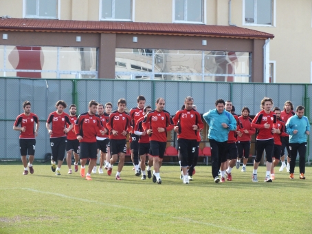 Son haftalarda oynadığı futbolla göz dolduran kırmızı-beyazlılar, dün yaptığı idmanla Kartalspor maçının hazırlıklarını tamamladı. Saat 16.30’da başlayan idmanı Boluspor Kulüp Başkanı Necip Çarıkçı ile birlikte yöneticilerden Hakan Dizman da izledi. İdman öncesinde oyuncuları ile yaklaşık 15 dakikalık bir toplantı yapan Teknik Direktör Bahri Kaya Karabük maçını değerlendirmesini yaptıktan sonra Kartalspor maçının önemini anlattı. Kaya daha sonra Veli ile de özel bir görüşme yaptı. Kaya, Çarıkçı ve Dizman ile de bir süre görüştü. Düz koşu ile başlayan dünkü çalışmada sakatlıkları bulunan Gencer ile kaleci Eser yer almazken, bu oyuncuların yaklaşık 10 gün daha çalışmalarda yer almayacağı bildirildi. Kupa maçında 90 dakika forma giyen futbolcuların hafif bir çalışma ile tamamladığı idmanda daha sonra 5’e 2 top kapma ve yarı saha maç yapıldı. Boluspor’un dünkü çalışmasında yaklaşık 2 haftadır sakat olan Omar ve Sercan da yer aldı.