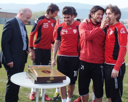 2 tepsi baklavayı Karaçayır Tesisleri’ne getiren Çarıkçı son haftalarda oynanan iyi futbol ve kazanma hırsı nedeniyle takımdan oldukça memnun görünüyor. Futbolculara kendi elleriyle baklava yediren Necip Çarıkçı’nın bu jesti Boluspor’lu futbolcuların yüzünü güldürdü. Oyunculardan Emre Toraman da bir diğer tecrübeli futbolcu Orhan Ak’a kendi elleriyle tatlı yedirdi. Futbolculara bir jest ise Orhan Ak’tan geldi. Orhan Ak annesinin yaptığı tatlıyı idman sonrası arkadaşlarına ikram etti.