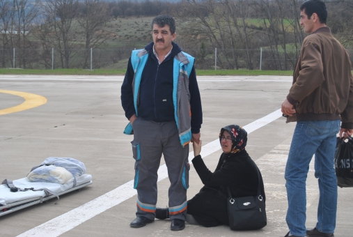 AİBÜ Kardiyoloji servisinde tedavi gören 67 yaşındaki Mustafa Parmaksız’ın kalp çıkışından böbreklerine kadar atardamarları yırtıldı. Sağlık durumu kritik seviyeye gelen Parmaksız’ın Ankara’ya sevkini uygun gören doktorları, Sağlık Bakanlığından ambulans helikopter talep etti. Talep üzerine gelen ambulans helikopterle Ankara’ya sevk edilen hastanın yakınları, pistte gözleri yaşlı şekilde helikopterin havalanmasını beklediler. Ankara Yüksek İhtisas Hastanesine sevk edilen Mustafa Parmaksız (67) ambulansta hareket etmesini engelleyecek ilaç karışımları verildikten sonra Ankara’ya sevk edildi.