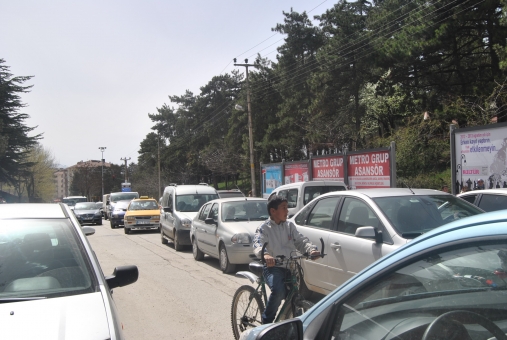 Sabah erken saatlerde ve öğle arasında çocuklarını okullarına elleriyle teslim etmek isteyen veliler, trafik kurallarını da alt üst ediyor. Genellikle okul önünde çift sıra, hastane bahçesi önünde de tek sıra park yapan veliler, hastane caddesini de tek şeride düşürmüş oluyor. Polis ekiplerinin zaman zaman müdahale etmek zorunda kaldığı caddede yaşanan sıkıntı sürücüleri de canından bezdiriyor. Trafik yoğunluğunun tam ortasında kalan İzzet Baysal Kadın Doğum ve Çocuk Hastanesinin ambulans giriş çıkışları da bu trafik yoğunluğu altında büyük risk taşıyor. Zamana karşı yarışan hastaların can güvenliği de bu yoğunluk nedeniyle tehlikeye atılmış oluyor.