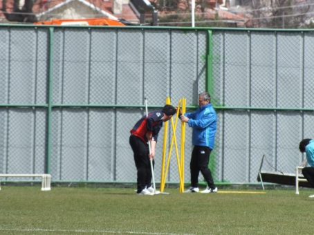 Teknik Direktör Bahri Kaya sadece taktik vermekle ve çalıştırmakla kalmıyor. Deneyimli teknik adam oyuncularının yaptığı koordinasyon ve çabukluk çalışması için sahayı hazır hale getiren isim oldu. Malzemeleri malzemecilere bırakmadan sahaya yerleştiren Kaya, bu işi de oldukça titiz ve düzenli bir şekilde gerçekleştirdi. Hatırlanacağı gibi Kaya daha önce de Karaçayır Tesisleri’nin zeminindeki pislikleri alan dışına elleriyle tek tek atarak oyuncularını olası bir riskten korumuştu.