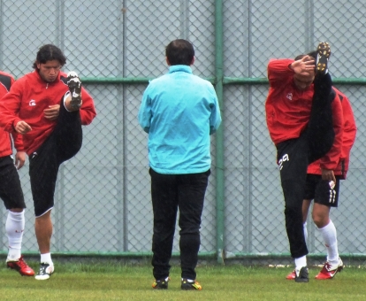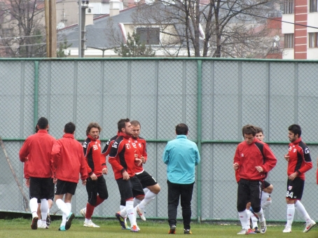 Hazırlıklarına ara vermeden devam eden kırmızı-beyazlı ekibimiz dünkü çalışmaya kısa bir düz koşu ile başladı. Teknik Direktör Bahri Kaya nezaretinde yapılan çalışmada açma ve germe hareketlerinden sonra ısınma hareketleri gerçekleştirildi. Hafif yağmur altında yapılan çalışmada daha sonra haftasonunda oynanacak olan Denizlispor maçının provası niteliğindeki çift kaleye geçildi. Çift kale maçta oyuncuların bir hayli hırslı ve isteklim görünmeleri teknik heyetin yüzünü güldürürken, Teknik Direktör Bahri Kaya çift kale esnasında oyuncularını sık sık uyarmayı ihmal etmedi.