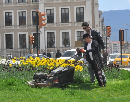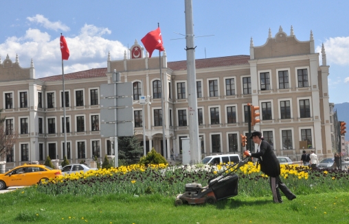 Bolu Belediyesi Park ve Bahçeler Müdürlüğü’ne bağlı ekipler, parklardaki ağaç budama çalışmalarından sonra şehrin belirli bölgelerinde bulunan döner kavşaklarda çiçek dikerek çevre düzenlemesi yaptı. Kaldırım kenarları ve kavşaklara dikilen laleler güzel görüntüler oluştururken, şimdi de çim biçme çalışmaları başladı. Gündelik olarak belirlenen fiyatlarla çevre düzenlemelerine destek veren kadınlar, uzayan çimleri biçerek çevre düzenlemelerine destek verdi. Ekipler, çalışmalara katılan kadınlara önce çim biçme makinelerinin nasıl kullanılması gerektiğini öğretti. Ardından da ellerine makineleri alan kadınlar, vilayet binası önündeki kavşakta çimenleri biçti.