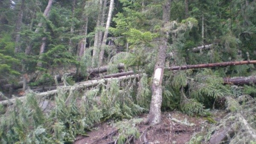 Bolu Orman Bölge Müdürlüğü Mudurnu Orman İşletme Müdürlüğü Sarpuncuk Orman İşletme Şefliği 63 ve 64 no’lu bölmelerde, 18/04/2012 tarihinde meydana gelen fırtına, sarıçam ve göknar ağaçlarının köklerinden devrilmesine ve kırılmasına neden oldu. Hasar tespit çalışmaları devam ediyor.