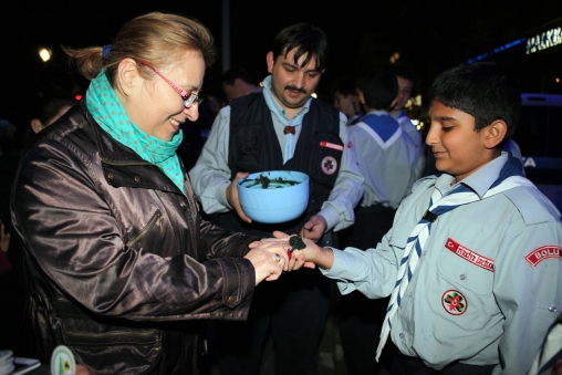 Bolu Belediyesi’nin katkılarıyla 22-26 Nisan 2012 tarihleri arasında Çanakkale’de kamp yapacak olan izcilerimize yolculuk öncesi belediye meydanında bir program düzenlendi.