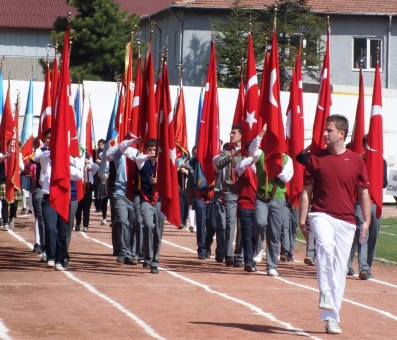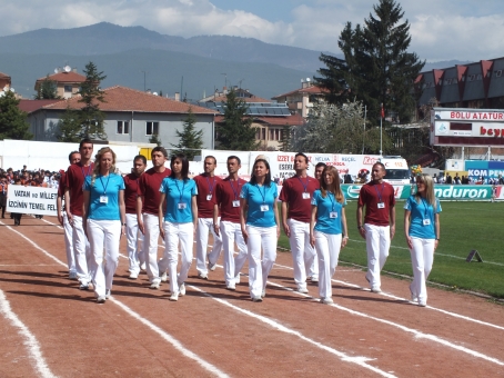 Stadyumdaki törene Bolu Milletvekilleri Ali Ercoşkun, Tanju Özcan, Vali İbrahim Özçimen, Garnizon Komutan Vekili Jandarma Albay Ümit Yücekan, Emniyet Müdürü Sabri Durmuşlar, Daire Müdürleri, Sivil Toplum Örgütü Temsilcileri, Siyasi Partilerin Temsilcileri, öğrenciler, öğretmenler ve vatandaşlar katılırken, Fas’ta bulunan Belediye Başkanı Alaaddin Yılmaz’ı Başkan Yardımcı Mehmet Özbostancı temsil etti. Bu alandaki tören Vali İbrahim Özçimen’in halkın ve öğrencilerin bayramını kutlaması ile başladı. Kutlamanın ardından öğrenciler protokole saygı buketlerini sundular.İstiklal Marşı’nın okunmasını, öğrencilerin and içme töreni izledi. Günün anlam ve önemini belirten konuşmaları Milli Eğitim Müdürü Recep Alpdoğan ve Kültür İlköğretim Okulu öğrencisi Aleyna Çakmak yaptı. Şiirlerin okunmasından sonra Gençlik Hizmetleri ve Spor İl Müdürlüğü Merkezi Halkoyunları topluluğu Trabzon yöresine ait halkoyunlarını başarıyla sergileyerek izleyenlerden büyük alkış aldı. Tören geçisinden sonra ise öğrenci gösterileri başladı. Jimnastik ve Bolu halkoyunları gösterileri ile stadyumdaki tören de tamamlandı. Stadyumdaki törenin ardından Bolu Belediyesi Ressam Mehmet Yücetürk Sanat Merkezi’nde “Benim Gözümden Bolu” konulu ilköğretim öğrencileri arası Geleneksel 7.Resim Yarışması Sergisi’nin açılışı ve ödül töreni gerçekleştirildi. İl İzci Kurulu ve Belediye Başkanlığı’nca akşam saat 20.00’de Anıtpark ile Belediye Meydanı arasında düzenlenen Fener Alayı ile 23 Nisan programı tamamlanmış oldu.