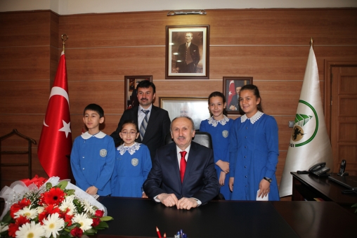 Okul Müdürü Mehmet Yazgan ve okul öğretmenleri ile birlikte Başkanlık makamına gelen 5 A sınıfı öğrencisi Beyzanur Bayraktar, Başkan Mehmet Özbostancı’yı makamında ziyaret etti. Sıcak diyalogların yaşandığı kısa sohbetin ardından Belediye Başkan Vekili Mehmet Özbostancı, başkanlık koltuğunu yeni başkan Beyzanur Bayraktar’a devretti. Koltuğu Mehmet Özbostancı’dan devralan minik öğrenci Beyzanur Bayraktar, Bolu Belediyesi Fen İşleri Müdürü Seddar Topaç ile telefonla görüşerek, yol yapım çalışmaları ile ilgili bilgi aldı. Yolların yapılması konusunda talimat veren küçük başkan Beyzanur, telefon görüşmesinin ardından yol yapım çalışmaları hakkında aldığı bilgileri paylaştı ve kısa sürede bu sorunun ortadan kalkacağını söyledi. Konuşmaların ardından Belediye Başkan Vekili Mehmet Özbostancı, kendisini ziyaret eden Mevlana İlköğretim Okulu yönetici ve öğrencilerine çeşitli hediyeler takdim etti.