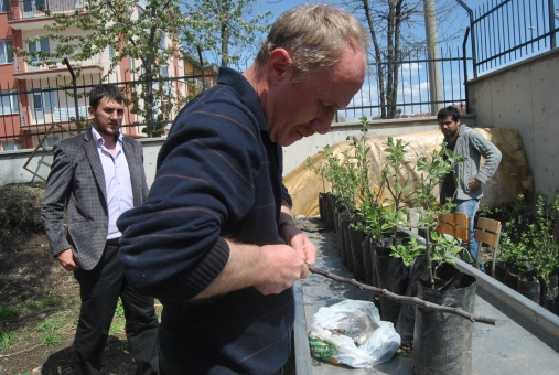 Abant İzzet Baysal Üniversitesi, Bitkisel ve Hayvansal Üretim Bölüm Başkanı Yrd. Doç. Dr. Hamdi Zenginbal, ya da öğrencilerinin tabiriyle Hamdi Baba! Zaman zaman öğrencileriyle mangal yapan, bazen futbol oynayan, bazen de bu güne kadar uygulamalı yapılamayan dersleri kendi çabalarıyla uygulamalı hale getiren bir akademisyen o. Artık örneğine birçok okulda rastlanmayan gerçek bir Hoca. Hamdi Hoca, son olarak öğrencilerine, aylar öncesinden hazırlıklar yaparak fidelere aşı yapmayı öğretti. Çalışmaları hakkında bilgiler veren Yrd. Doç. Dr. Hamdi Zenginbal “Bolu’da bir ilki yaptık, örtü altında sebze ürettik. Öğrencilerimizden tekniker yetiştiriyoruz biz. Tarım teknikeri öğrencilerimize örtü altında sebze yetiştirme konusunda eksikliğimiz vardı böylelikle gidermiş olduk. Bahçe tarım programı sadece sebzecilikten ibaret değil. Süs bitkileri, meyvecilik ve bağcılık bu işin içerisindedir. Bizim istediğimiz masa başında veya sınıfta bir Ziraat Teknikeri değil uygulamada, sahada alanda bir ziraat mühendisi ve ziraat teknikeri yetiştirmek ana gayemizdir. Bu konuda meyvecilikle ilgili yavaş yavaş bahçelerimizi kuruyoruz. Yani bir öğrenci elma bahçesini görüp, budama nasıl yapılır, aşı kalemi nasıl alınır, hastalık var mı, yok mu tespiti nasıl yapılır, bunları gösteriyoruz. Bir diğer ayağı da bu işin, fidan üretim kısmı. Geçen sene Bursa’dan Yabani Elma türleri getirttik. Şimdi onlara aşı uygulaması yapacağız, aşı kalemlerini önceden kış aylarında aldık. Buzdolabında beklettik bu zamana kadar, şimdi o kalemleri çıkarttık aşı yapacağız. Gala, Golden, Gransimit ve ,Redşif diye Bolu ve Seben bölgesinde yetişen çeşitlerimiz var. Bunlar, Bolu’da en yaygın yetişen 4 elma çeşididir. Bunlardan aşı kalemlerine aldık. Bu dört farklı kalemi iki farklı anaç üzerine, iki farklı aşı metoduyla T yongalı ve göz aşı metoduyla aşı farklılığını ölçeceğiz. Aşılama konusunda eksikliğimizi de bu şekilde gidereceğiz” dedi. Önümüzdeki eğitim öğretim dönemi için de çalışmaların devam ettiğinin altını çizen Yrd. Doç. Dr. Hamdi Zenginbal, “Önümüzde ki yıl Süs Bitkileri ve Peyzaj diye yeni bir bir program açılmasını teklif ettik YÖK’e. O açılırsa bir seramızı olduğu gibi fidanlık yapacağız. Orada sadece süs bitkisi ve fidan yetiştireceğiz” dedi.