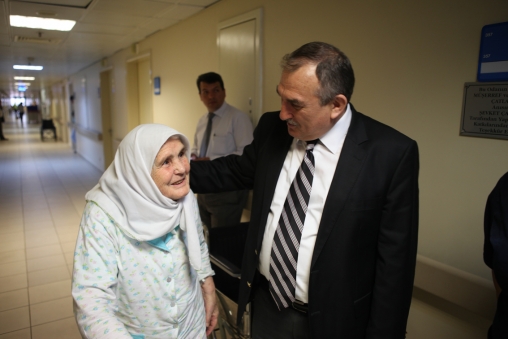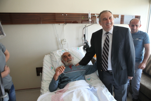 Başkan Yılmaz 8 ayrı adreste gerçekleştirdiği hasta ziyaretlerinin ardından, geçtiğimiz gün Bolu’da trafik kazası geçirerek, İzzet Baysal Devlet Hastanesi Yoğun Bakım’ın da tedavi altında alınan Merkez Valisi Ayhan Çevik’inde sağlığı hakkında bilgiler aldı. Hastaneye giderek Vali Çevik’in ailesini de ziyaret eden Yılmaz, aileye geçmiş olsun dileklerinde bulundu. Yılmaz ayrıca, Belediye personeli Ayşe Dagül Ayık’ın hastanede yatan babası Hakkı Dagül’ü de ziyaret ederek geçmiş olsun dileklerinde bulundu.