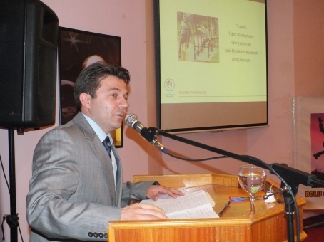 Düzenlenen toplantıda Bolu Valisi İbrahim Özçimen, Bolu Belediye Başkanı Alaaddin Yılmaz ve Gençlik Hizmetleri ve Spor İl Müdürü Suat Çelen ile antrenörler de hazır bulundu. Toplantıda konuşan Çelen, projeyle 7’den 70’e herkese spor yaptırmayı hedeflediklerini belirterek şunları söyledi: “Önümüzdeki yıl faaliyete geçecek olan spor salonumuzun arazisi için öncelikle Belediye Başkanımıza teşekkür ediyorum. Bu etkinliklere katılacak olanların sağlık durumları ile de ilgileneceğiz. Ayrıca okçuluk ve dart gibi sporlarla ilgili de bilgiler vereceğiz. Hedefimiz Bolu’da spor yapanların sayısını arttırmaktır. Sağlıklı bir vücut için spor yapmalıyız. İlimizde 30 bin öğrenciden 7 bini spor yapıyor. Bu sayıyı da arttırmak istiyoruz.” Çelen’den sonra konuşan Bolu Belediye Başkanı Alaaddin Yılmaz ise özellikle Karaçayır’a yapılacak olan stat ile ilgili olarak Bolu Valisi İbrahim Özçimen’den yardım istediği konuşmasında şunları söyledi: “Artık sabah namazı sonrası bile Atatürk Orman Parkı’nda spor yapan insanlar görüyoruz. Karaçayır’da 1900 dönümlük alan olimpik spor alanı olarak düşünüldü. Sağlıklı bir nesil için çalışıyoruz. Yakında Karaçayır’da kano bile yapılacak. Bu alana plaj yapılacak, hatta yüzme sporu da yapılacak. Karaçayır Türkiye’de eşi benzeri olmayan bir yer olacak.” Toplantıda son konuşmayı yapan Bolu Valisi İbrahim Özçimen ise, “Sporu sadece sporcular değil herkes yapmalı. Tesisler arttıkça dünya ve olimpiyat şampiyonları çıkarırız. Bolu’da iyi bir noktadayız. Tüm branşlarda hoca ve tesisimiz var. Katılımı arttırmalıyız” dedi.