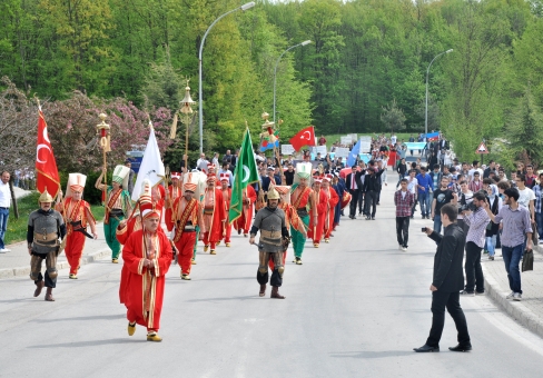 Bolu Ülkü Ocakları tarafından organize edilen 3 Mayıs Dünya Türkçülük Günü kutlamaları çerçevesinde AİBÜ’de tören düzenlendi. Eğitim Fakültesi önünden başlayan yürüyüşe yüzlerce öğrenci ve vatandaşlar katıldı. Ellerinde pankartlar ve Türk bayraklarıyla yürüyen gruba Düzce Mehter Takımı da eşlik etti. Mehter Takımı’nın arkasında marşlarla birlikte yürüyüşe geçen grup, “Ne mutlu Türküm diyene”, “Her şey vatan için”, “3 Mayıs Türkün özel günüdür” şeklinde slogan attı. Üniversitede bulunan yüzlerce öğrenci ve eğitim görevlileri mehter takımıyla beraber yürüyüşe geçen öğrencileri izledi. Yürüyüş kongre merkezi önünde sona erdi. Burada kısa basın açıklaması yapan ülkü ocakları, daha sonra mehter takımının marşlarını dinledi. Yürüyüşe katılan yüzlerce öğrenci programın ardından hep bir araya gelerek yemin ederken, olaysız şekilde dağıldılar.