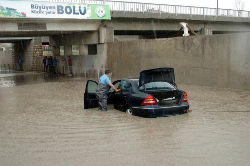 Hafta sonu için sağanak yağış yapan Meteoroloji Genel Müdürlüğü, özellikle Bolu ve civarı için uyarı yayınlamıştı. Uyarıları dikkate almayanlar, Pazar günü acı bir sürprizle karşılaştılar. Sanayi Sitesinin D-100’e bakan cephesi, Küçük Sanayi Sitesi’nin büyük kısmı, Beygaz’ın hizmet binasının bulunduğu binanın bodrum katları, Kültür Mahallesi Atilla Sokak’ta ve Köroğlu Mahallesi Bahadır Sokak’ta bulunan çok sayıda ev ve işyeri sular altında kaldı. Kuruçay Köprüsünden geçmeye çalışan bir kişi de aracıyla birlikte sulara gömüldü. Çevreden yetişen vatandaşlar tarafından aracından çıkartılan vatandaşın aracı, itfaiye ekiplerinin çalışmasıyla kurtarılabildi.