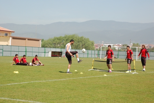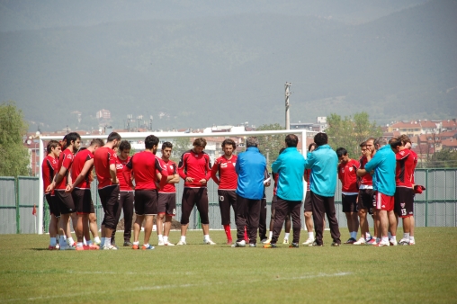 Boluspor’un dün saat 11.00’de yaptığı çalışma öncesinde Emre Kılınç-Eser ikilisi ile Veli-Ferhat ikilisi kısa süreli bir ayak tenisi maçı yaptılar. Mücadeleden galip çıkan taraf Veli-Ferhat ikilisi oldu. Düz koşu ile başlayan idmanda kadro dışı bırakılan ve gönderilmesi an meselesi olan Omar, hafif sakatlığı nedeniyle sezonu kapatan Veysel, Caner, Onur ve Kenan yer almadı. 19 kişilik kadro ile çalışan Kaya, idmanda futbolcuları ile yaklaşık 15 dakikalık bir görüşme yaptı. Kaya, iddiaları kalmasa da Güngören maçını kazanmaları gerektiğini söyledi. Açma-germe ve ısınma hareketleri ile devam eden çalışmayı yöneticilerden Hakan Dizman da takip etti. Kırmızı-beyazlı futbolcular tek pas top çalışmasını ardından, 2 grup halinde çalıştı. Yedek ve sakatlardan oluşan takım kendi arasında tek pas yapmaya devam ederken, diğer futbolcular ise yarı sahada tek kale maç yaptılar. İdman sonrasında sorularımızı yanıtlayan Boluspor’un siyahi oyuncusu Gomis Boluspor’da kalmak istediğini söyledi. Diğer yandan Boluspor bugün yapacağı tek idmanla çalışmalarına devam edecek.