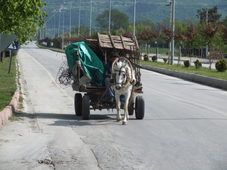 Aktaş Mahallesi Parlak Sokak girişi üzerinde objektifimize takılan vatandaş, at arabasına doldurduğu hurdalarla, akşam güneşine karşı keyifle arabasını sürdü. At arabası ile hurdacılık yapan vatandaş, oldukça sık kullanılan çevre yolunda tehlikeli görüntüleri de ortaya çıkardı. Işıklarda duraklamaya gerek duymadan hurda yüklü at arabasıyla kavşağa dalan süvari! trafiği düşürdüğü tehlikeyi çok önemsememiş görünüyordu.