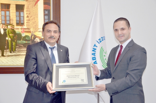 Üniversiteler ve araştırma kurumlarının ulusal ve uluslararası performanslarını değerlendirmede dünya çapında bir kurum olan Elsevier Yayınevi’nin 2006-2010 yıllarını kapsayan ölçme ve analizleri sonucu AİBÜ; kimya, biyoloji, biyoteknoloji, sağlık bilimleri ve sosyal bilimler kapsamında 22 alt başlıkta dünya üniversiteleri arasında ön sıralarda yer aldı. AİBÜ’nün elde ettiği başarı nedeniyle Elsevier Yayınevinin hazırladığı başarı belgesi, kurum yetkilisi Ayhan Akanay Saracoğlu tarafından AİBÜ Rektörü Prof. Dr. Hayri Coşkun’a takdim edildi. Elde edilen başarının kendilerini çok mutlu ettiğini ifade eden Prof. Dr. Hayri Coşkun “Bu tür çalışmaları yapıp üniversitelerimizin istifadesine sunan herkese teşekkür ediyorum. Üniversitemiz mensuplarına ayrıca teşekkür ediyorum. Çünkü değişik birimlerde akademik çalışma yapan arkadaşlarımızın katkısıyla bu belge kazanılmıştır” dedi. Coşkun, “AİBÜ’nün kurucusu İzzet Baysal’ı anma ve şükran günleri ve 20. Kuruluş yıldönümünde böyle bir belgeyi kazanmış olmak, anlamını önemini daha da artırıyor” şeklinde konuştu. Belge takdimine, Rektör Yardımcısı Prof. Dr. Mehmet Bahar, Kütüphane ve Dokümantasyon Daire Başkanı Leyla Kanık ve kütüphane personeli de katıldı.