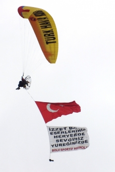 İzzet Baysal Bolu’da dün sadece yeryüzünde değil, gökyüzünde de düzenlenen özel bir etkinlikle anıldı. Bolu Sportif Havacılık Kulübü’ne bağlı olan Türk Hava Kurumu yetkili hocası Orhan Özgürbaş, Türk Bayrağı ve üzerinde “İzzet Baba eserleriniz her yerde, sevginiz yüreğimizde” yazılı bir pankartla gökyüzünde tur attı. Türk Hava Kurumu’na ait paramotor ile Bolu’nun hemen hemen her noktasına giden paraşütçü vatandaşlardan yoğun ilgi gördü ve İzzet Baysal sevgisinin büyüklüğünü bir kez daha gözler önüne serdi. Konuyla ilgili olarak gazetemize bir açıklama yapan Türk Hava Kurumu Bolu Şube Başkanı Koray Varlık, “İzzet Baysal’ sadece 1 gün değil hergün anıyoruz. Eserleriyle Bolu’ya damga vuran İzzet Baysal’ı unutmadığımızı böyle bir etkinlikle göstermek istedik. Onu hiçbir zaman unutmayacağız” dedi.