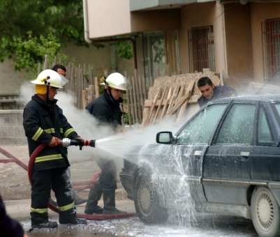 Olay hafta sonu, Kültür Mahallesi Şehitler Caddesi üzerinde meydana geldi. 14 DP 577 plakalı otomobilini yolun kenarına park edip çalışır vaziyette bırakan Hüseyin Erkan, alışveriş yapmak için markete gitti. Hüseyin Erkan, otomobilin motor kısmının alev aldığını görünce şoke oldu. İhbar üzerine kısa sürede gelen itfaiye ekipleri, alev alev yanan otomobili söndürmeye çalışırken, polis ekipleri yolu trafiğe kapattı. Hüseyin Erkan, itfaiyenin çalışmasını üzüntü içerisinde izlerken, alevler kontrol altına alınarak söndürüldü. Yangının elektrik kontağı sonucu çıktığı tahmin edilirken, otomobil kullanılamaz hale geldi. Polis yangınla ilgili soruşturma başlattı.
