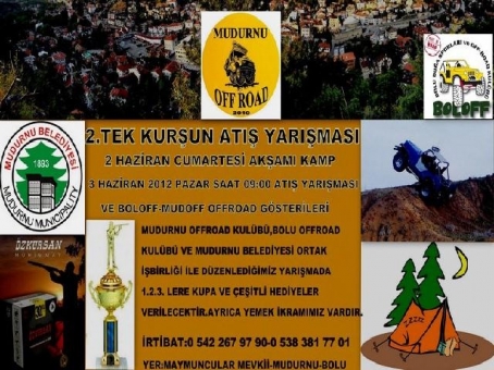 Konuyla ilgili bir açıklama yapan Dernek Başkanı Murat Yavuz, geçtiğimiz yıl 1. sini düzenledikleri atış yarışmasının bu yıl 2.Mudurnu Off-Road “Tek Kurşun Atış Yarışması” şeklinde yapılacağını ve müsabakalar için 2 Haziran Cumartesi akşami kamp kurulup, 3 Haziran Pazar günü de yarışların yapılacağını belirtti. Yavuz, düzenlenecek olan yarışlara komşu il ve ilçelerden off-road tutkunları ve kulüplerin de davet edildiğini belirterek, Mudurnu adının off-road ve sportif faaliyetler ile dünyaya duyurmayı hedeflediklerini ifade etti. Yarışmada, çeşitli ödüller ve off-road gösterilerinin de yer alacağı belirtildi.