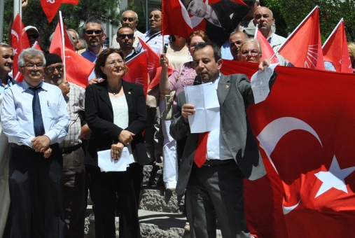 CHP İl Başkanı Fügen Kara ve CHP Bolu Milletvekili Tanju Özcan, yaptıkları konuşmalarla 19 Mayıs Atatürk’ü Anma Gençlik ve Spor Bayramı’nın kutlanmasının kısıtlanmasına tepki gösterdiler. CHP İl Başkanı Fügen Kara “Dünyanın ibret aldığı, cihana örnek olmuş bir bağımsızlık savaşının, özgürlük uğruna verilmiş yüzyıllar süren mücadelelerin birikimini sırtına yüklenip gelmiş bir onur savaşının ilk adımının atıldığı tarihtir 19 Mayıs. Yıllardır içinde bağımsızlık ateşi yanan, tarihinden, geçmişinden mücadelesinden ve dünyada eşi benzeri görülmemiş şekilde savaşlara karşı dik duruşundan övünen Atatürk’ün evlatlarının bayramıdır. 1938 yılında alınan kararla Gençlik ve Spor Bayramı olarak tescillenmiştir. Atatürk, mücadeleye ilk adım attığı, kendi doğuşunu simgeleyeceğini söylediği gençlere armağan etmiştir. İnandıkları değerler uğruna, Cumhuriyet uğruna, insanlık asla vazgeçmemeleri ilk günkü kadar dinç ve dayanıklı kalmaları için bu bayramı gençlere vermiştir. 1995 yılında alınan kararla bu bayramın tam adı Atatürk’ü Anma, Gençlik ve Spor Bayramı olarak tescillenerek, Atatürk’ün, Atatürkçü düşüncenin üstüne basa basa anlatılması gerektiğinindi mesajını içermiştir” dedi. Kara AKP Hükümetine de yüklenerek “10 yıldır gerek eylemleri, gerek söylemleriyle, Cumhuriyetin ve tüm özgürlüklerin temeli olan laikliğe aykırı davranışların odağı haline geldiği tescillenmiş olan AKP, işi daha da ileri götürerek, çocukların üşümesini bahane göstermek suretiyle 19 Mayıs kutlamalarını iptal etti. Danıştay’ın kararı bozmasının ardından da kutlamaları Gençlik Spor İl Müdürlüklerine havale etti. Liderleri Tayyip Erdoğan ‘19 Mayıs’ın sıkıcı resmi törenlerle değil, özüne uygun gerçek bir coşkuyla kutlanmasını istediklerini belirtmiş, üstüne de ‘19 Mayıs’ın 29 Ekim’in ruhunu anlamak, öğrenmek isteyen varsa buyursun bu gençlik onlara öğretsin. Biz onlar gibi istismarın değil, özün takipçisiyiz’ demişti. Gözüken odur ki asıl amaç, Atatürk’ü anmak değil, Atatürk’ü unutturmaktır. Bu kutlamaları sıradanlaştırarak halkımızda bıkkınlık ve çaresizlik duygusunu oluşturmak isteyen iktidara ve yandaş sermayedarlarına vereceğimiz bir sözümüz var. Yalnız CHP ve Atatürk’ün gençliği, bundan sonra bu tür bir programın oluşmasına asla izin vermeyecek, gerektiği halde ise görevi devralacak, kendi bayramlarını gerektiği şekilde kutlayacaktır. İlk kez Cumhuriyet Halk partisi olarak 19 Mayısta Atamızın huzuruna çelenk koyamamanın üzüntüsünü yaşıyoruz” ifadelerini kullandı.