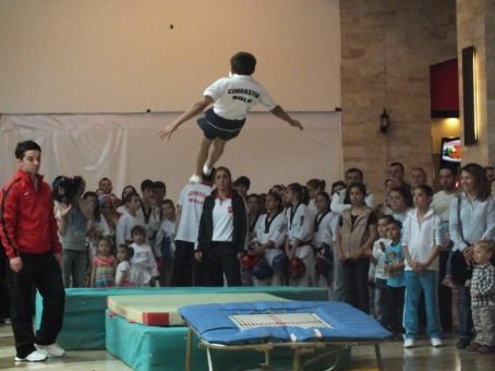 Oldukça heyecanlı anlara sahne olan gösteride antrenörleri Caner Güzeltürk koordinatörlüğünde zorluk derecesi yüksek olan hareketleri başarıyla sergileyen sporcularımız büyük alkış aldı. Yer ve sahne hareketleri ile gönülleri fetheden genç sporcular, özellikle trambolinde yaptıkları müthiş hareketlerle izleyenlere seyir zevki yaşattı. Oldukça estetik hareketler yapan sporcuları Vali Yardımcı Ömer Eru da ilgiyle izledi. Aynı ekip akşam saatlerinde de bu kez protokolün de katıldığı törende Vilayet Meydanı’nda gökyüzüne kucak açtı.