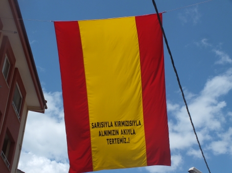 G.Saray’ın şampiyonluğu ile biten sezon sonrasında 30 m2’lik dev bir bayrak yaptıran ve üzerine de “Sarısıyla Kırmızısıyla Alnımızın Adıyla Tertemiz” yazdıran Doğanay çevrede bulunan esnaflarla birlikte dün yaklaşık 1 saat boyunca bayrak asma işiyle uğraştı. Sonunda amacına ulaşan Doğanay’ın dev bayrağı Karamanlı Mahallesi Ferit Talay Caddesi üzerinde dalgalanmaya başladı. Şampiyonluktan yaklaşık 10 gün sonra bu bayrağın asılması üzerine görüşlerini açıklayan F.Bahçe taraftarları, “Fırıldak bayramda satılır, bir sonraki bayrama kadar laflarda kalır. Biz o bayrağın geç kalınmış bir bayrak olduğunu düşünüyoruz” dedi.