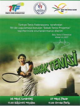 Türkiye Tenis Federasyonu tarafından 78 ilde uygulamaya konulan “Sokak Tenisi” projesi ilimizde bugün ve yarın gerçekleştirilecek. Uygulamanın startı bugün saat 11.00’de Hükümet Meydanı’nda verilecek. 2.uygulama ise yarın saat 11.00’de Atatürk Orman Parkında yapılacak. Konuyla ilgili bir açıklama yapan Tenis İl Temsilcisi Ahmet Ulusoy, “7’den 70’e herkesin katılabildiği, gençlerin kafe ve kötü alışkanlıklardan kurtulmasını amaçladığımız faaliyetimize tüm Bolu halkını bekliyoruz. Fiziksel ve ruhsal olarak sağlıklı kalmak ve stresten uzak durmak için Sokak Tenisi ile yarışmacı bir gençlik yaratmayı istiyoruz. Ayrıca Sokak Tenisi ile kort tenisinin de tanıtımına katkıda bulunmak istiyoruz” dedi.